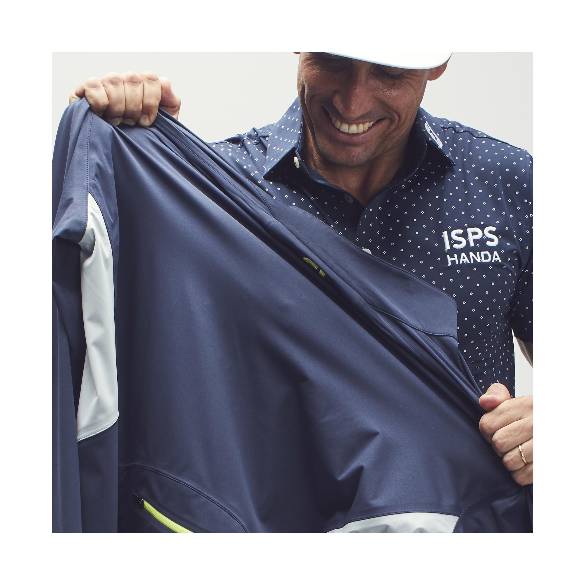 The FJ Hydroknit Pullover is constructed from a 3 layer bonded knit fabric that delivers 100% waterproof, breathable protection for golfers in cool, windy and rainy conditions. Make Every Day Playable with Tour-Proven FJ Golf Outerwear.