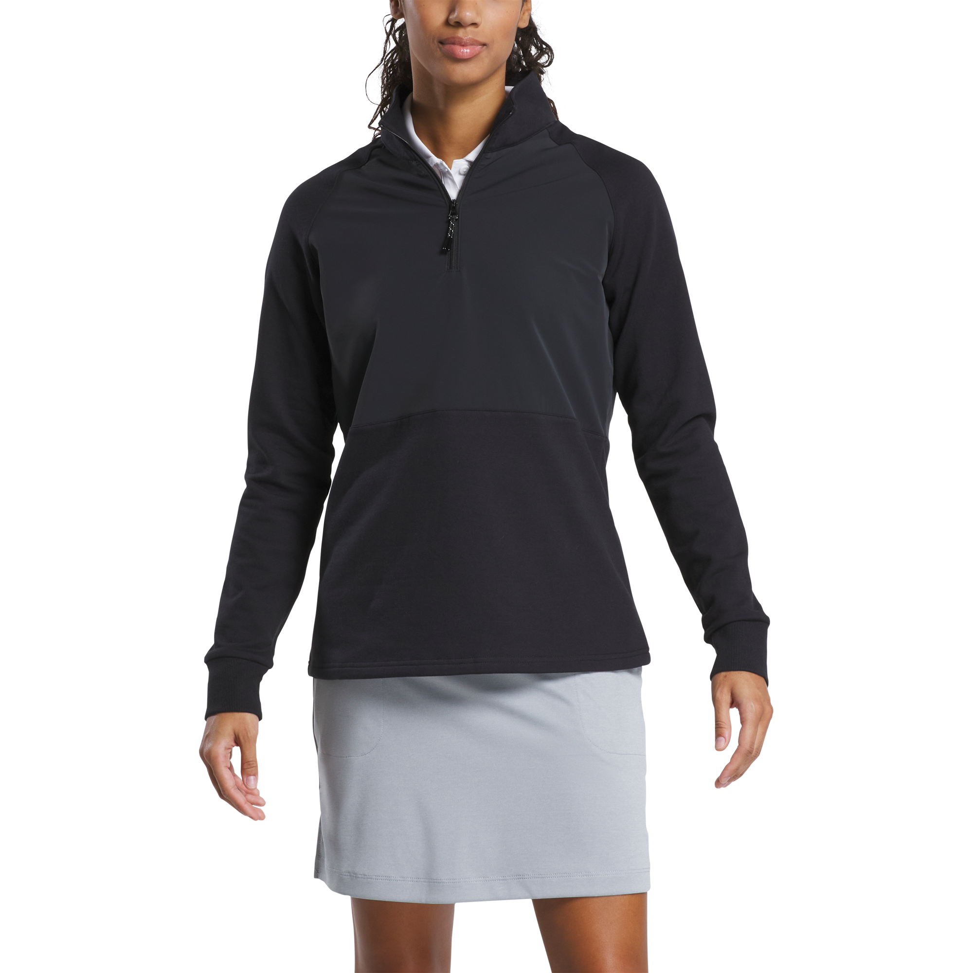 Women's mid-layers are versatile pieces that allow the player to adapt to changing weather conditions. The four-way stretch fabric helps keep your core warm while allowing free range of motion throughout the golf swing.